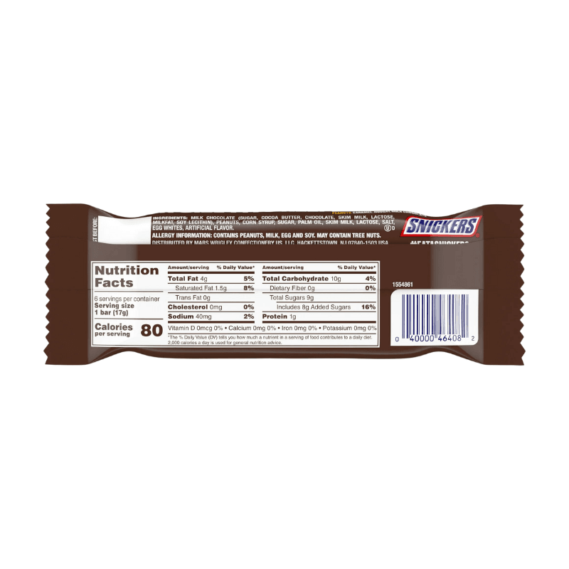 Barras de Chocolate con Maní Snickers Fun Size 6uds cantidad