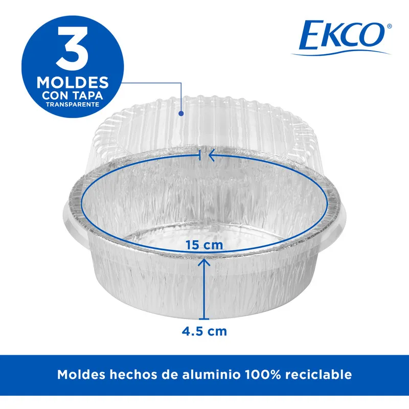Charolas de Aluminio Desechables con Tapa Ecko 3x3uds